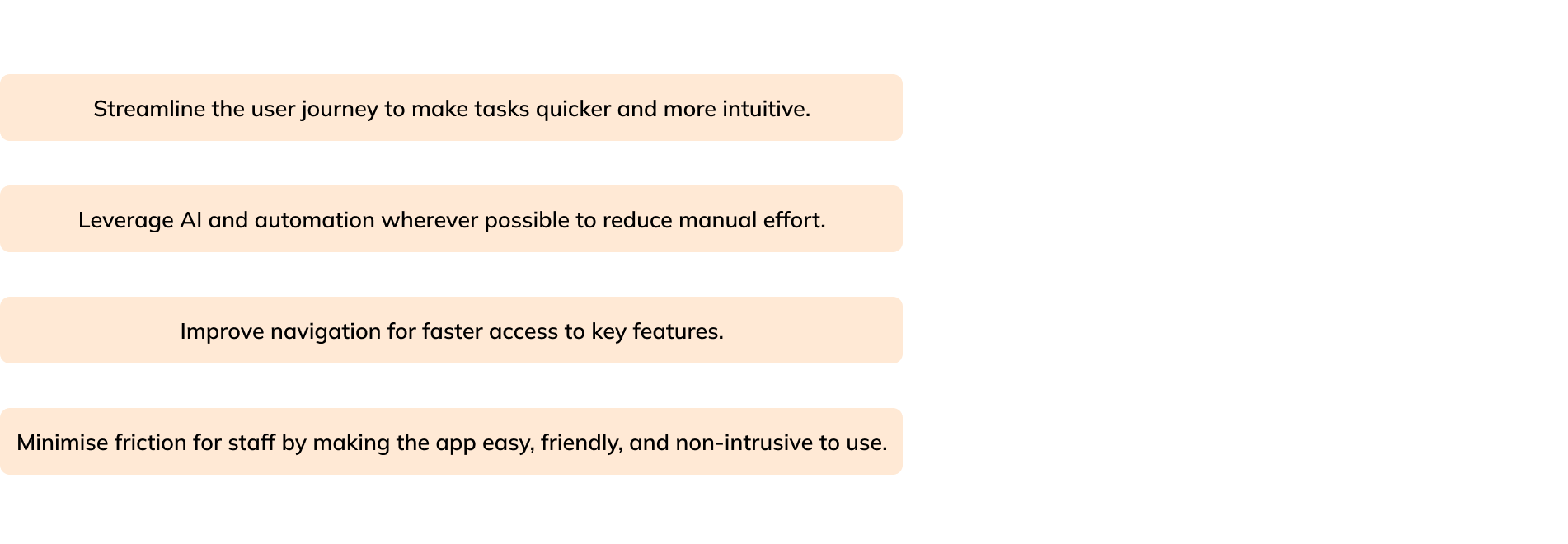 Instead of adding to support staff workload, the app needs to reduce manual effort and streamline routine tasks.